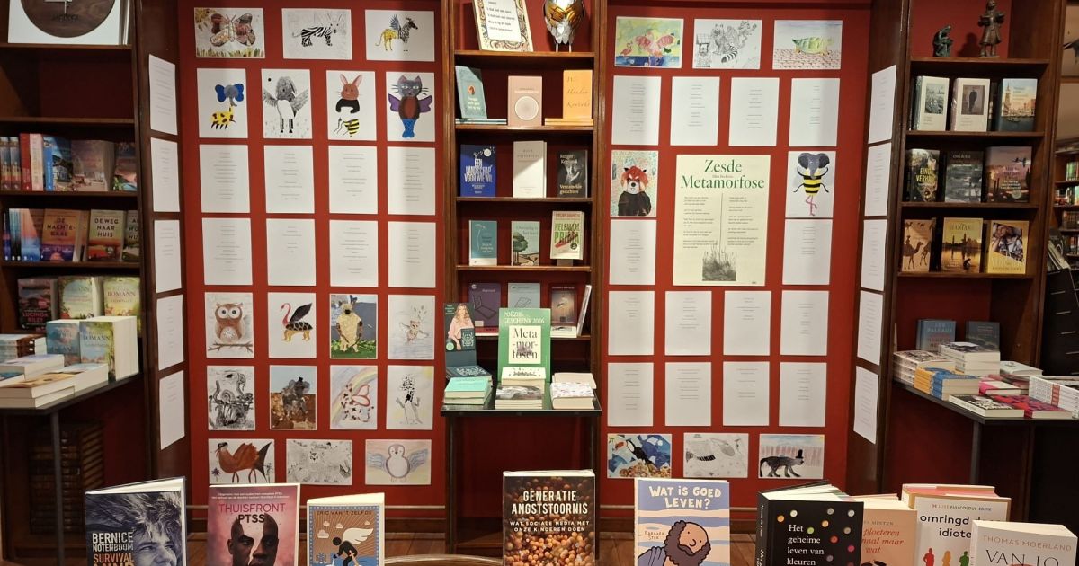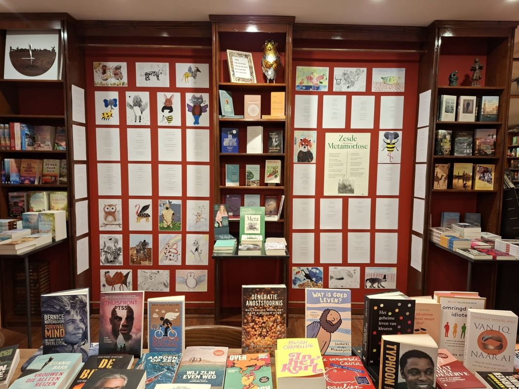 Voorafgaand aan deze week hadden de brugklasleerlingen bij het vak BEVO een tekening gemaakt waarop een metamorfose te zien is. Bij Nederlands hebben ze vervolgens, na een lessenserie over poëzie, op de andere kant van het blad een gedicht(je) geschreven. Dit heeft prachtige kunstwerken en teksten opgeleverd die tijdens een expositie te bewonderen waren bij boekhandel Riemer Barth in Meppel.